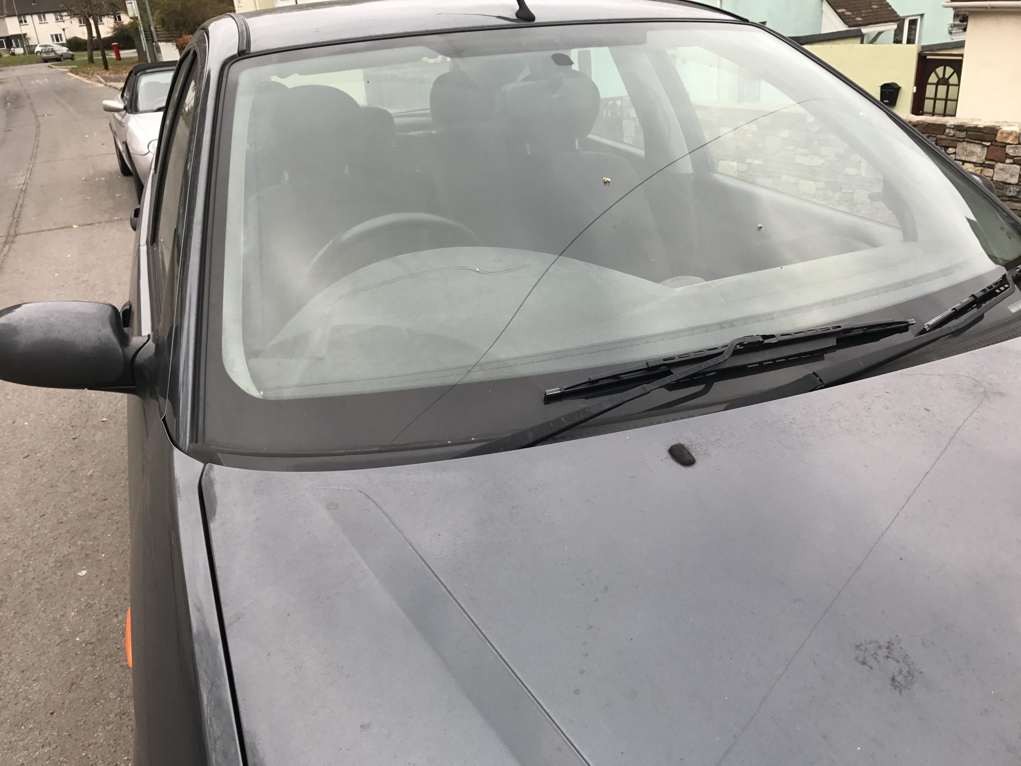 A stone hit the windscreen whilst driving and caused the glass to crack. Particular attention must be paid to the windscreen outer panel on the passenger side of the windscreen, if it isn’t replaced correctly and resealed it can cause a leak through the heater matrix which will initially seem like a windscreen leak. This fault can also occur if a garage removes the panel to replace the pollen filter on a service and then fail to reseal it.