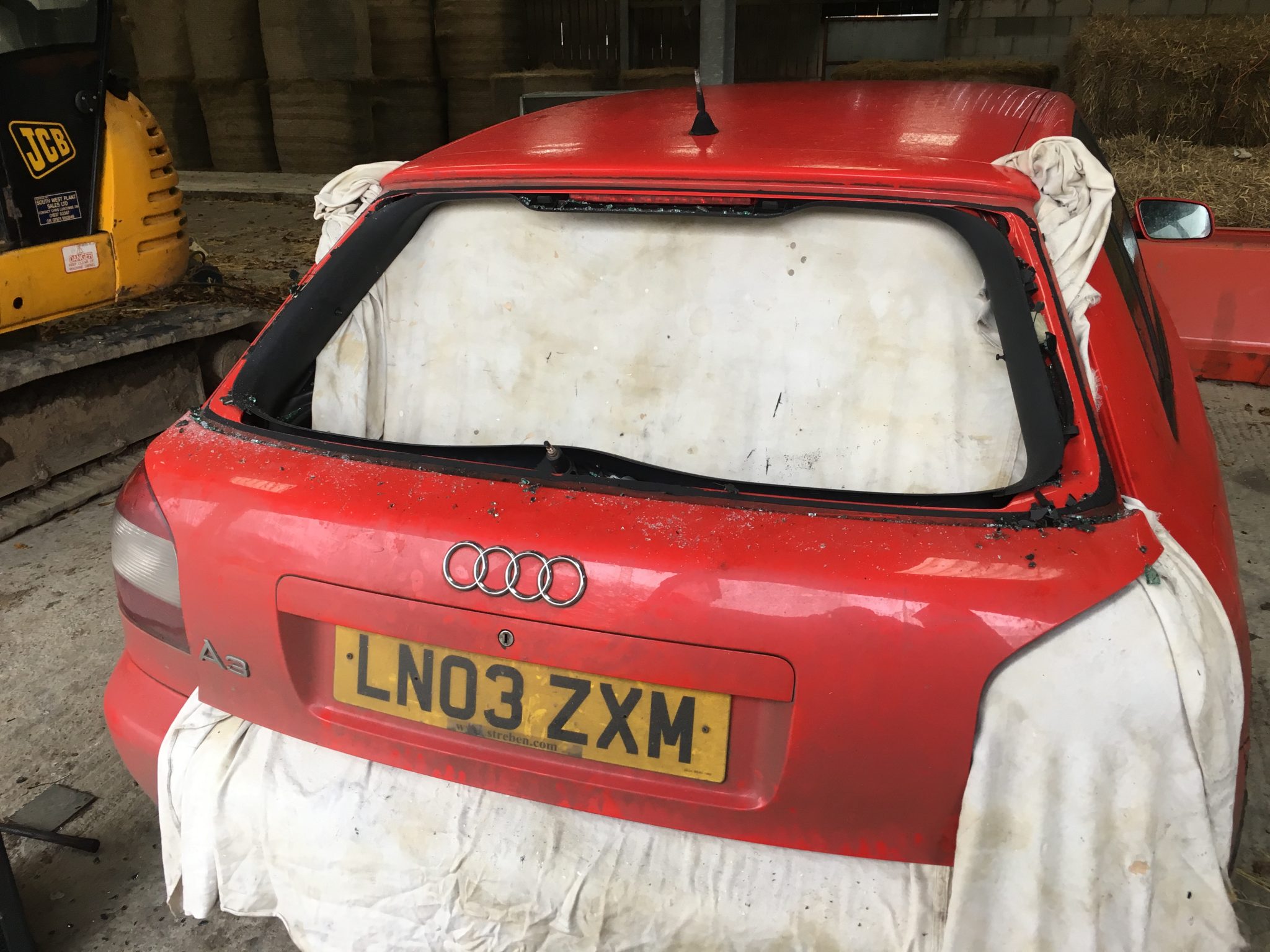 Audi A3 rear windscreen shattered in Drewsteignton.