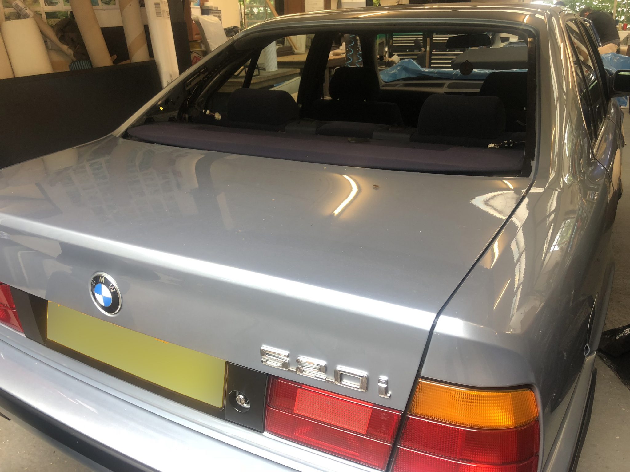 This BMW 5 series E34 is in immaculate condition. The windscreen would have probably broken so we removed the rear window, most of the clips broke and BMW charge around £4 a clip, our supplier still stocks the windscreen clips for around £6 a bag and luckily they fit the rear as well as the front windscreen.