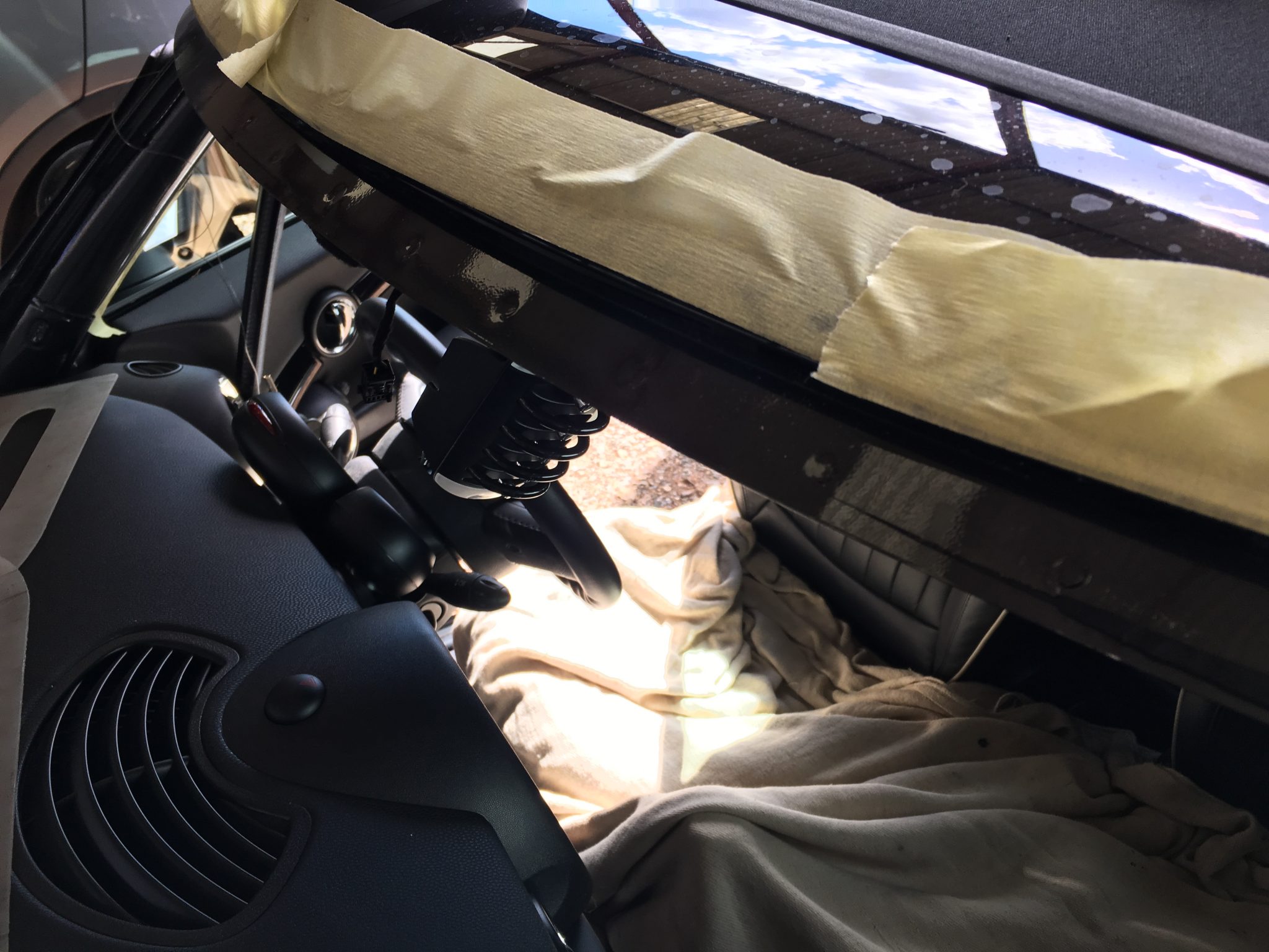 This BMW Mini Cooper had a leaking windscreen in Paignton.