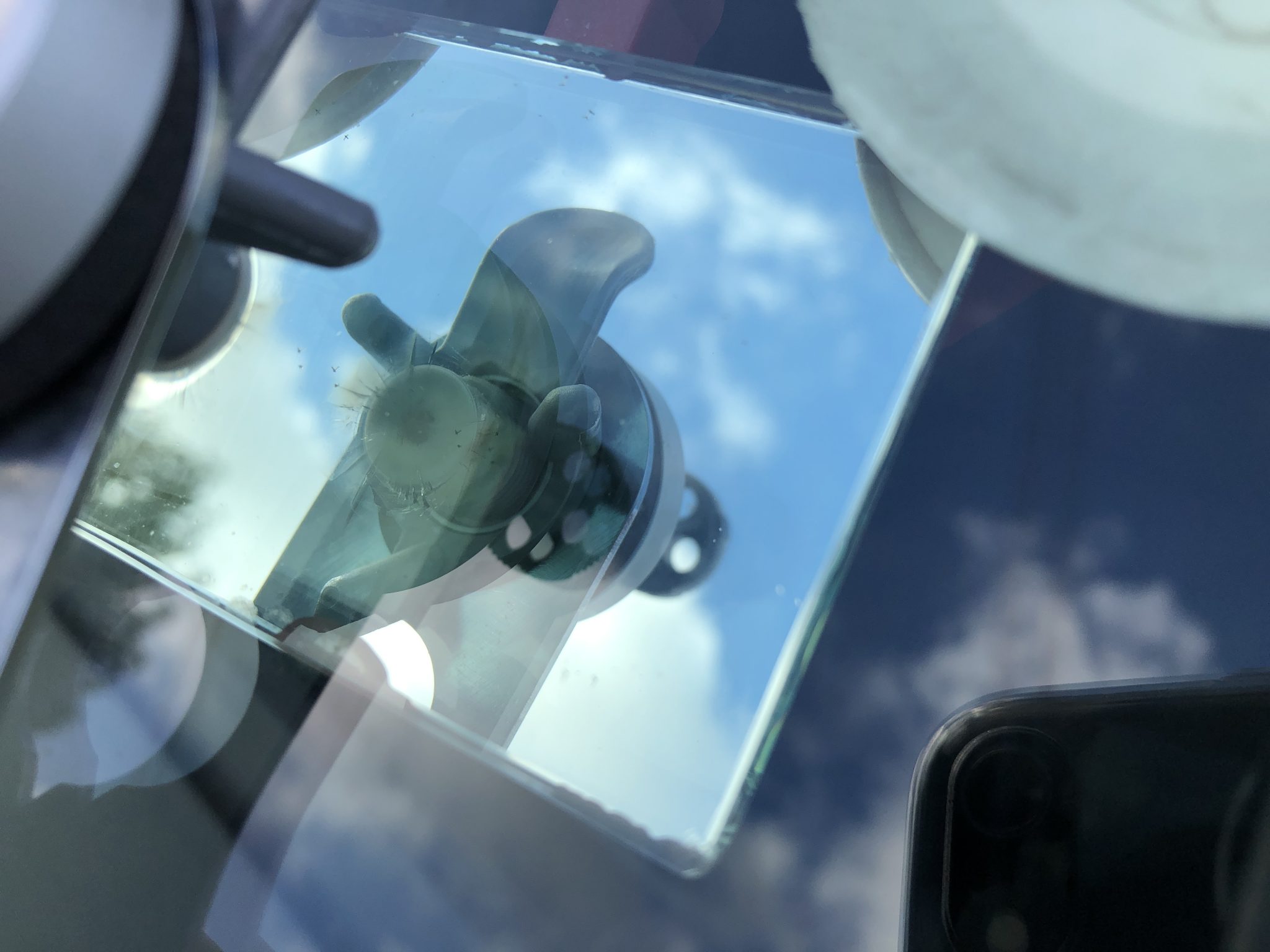 Although the stone chip was a bit on the large size and had deteriorated due to being left for too long we were able to repair it – the chip was on the passenger side of the windscreen and out of the wiper sweep so it just needed strengthening. These types of stone chips leave a clover leaf pattern in the resin due to the impact size and the deterioration of the laminate. Once a windscreen stone chip has been left for several months water enters the chip and starts to discolour the laminate, this discolouration isn’t reversible and the chip is left looking like a cataract.