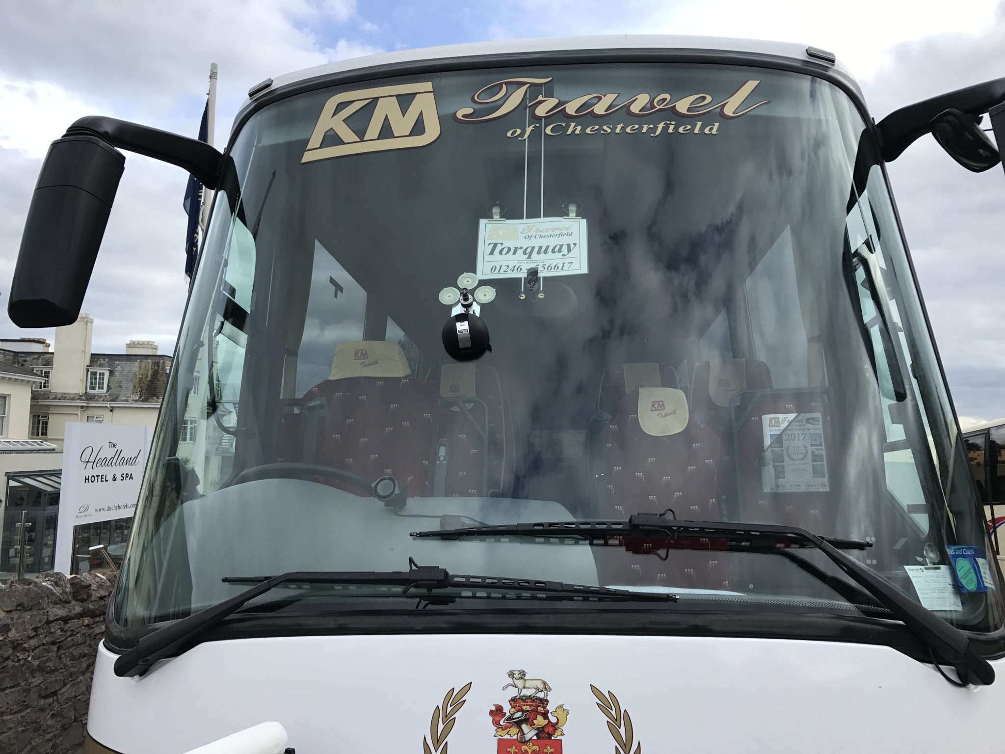 This ‘KM Travel of Chesterfield’ coach picked up a stone chip whilst on the M5 travelling to the Headland Hotel in Torquay.