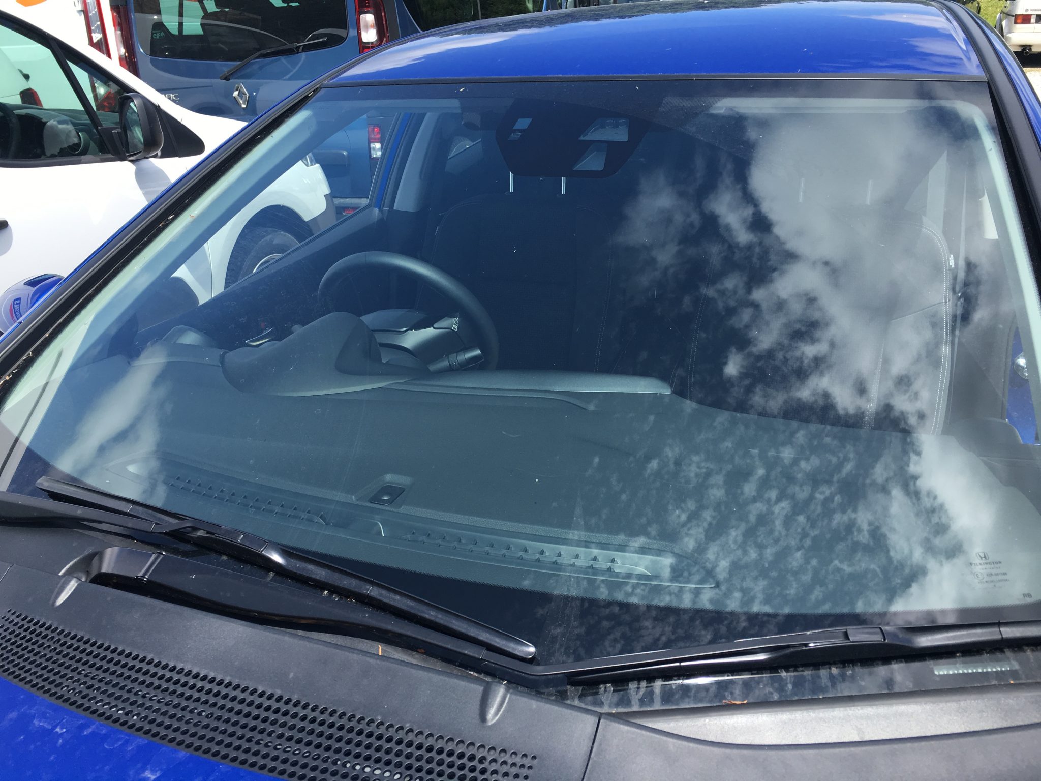 This particular Honda Civic windscreen came equipped with a rain sensor and city brake assist camera. For a fairly new car there were already 4 choices of windscreen, even with a DVLA registration link the choice of windscreens wasn’t narrowed. We took a picture of the central windscreen area where the rain sensor and camera were mounted and then liased with our suppliers in Exeter to ensure the correct glass was ordered.