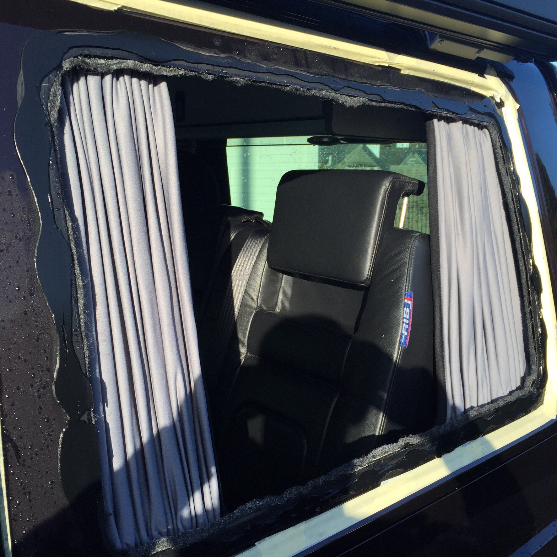 VW Transporter T5 side window leaking after a poor installation somewhere in Dorset. The customer was very lucky that the window hadn’t fallen out as the glass wasn’t primed and with a little pressure it completely let go the urethane. Normally when a window is cut out the old urethane is matt black in colour, of you look closely the urethane has a glossy shiny finish which indicates that it hadn’t bonded to the glass anywhere.