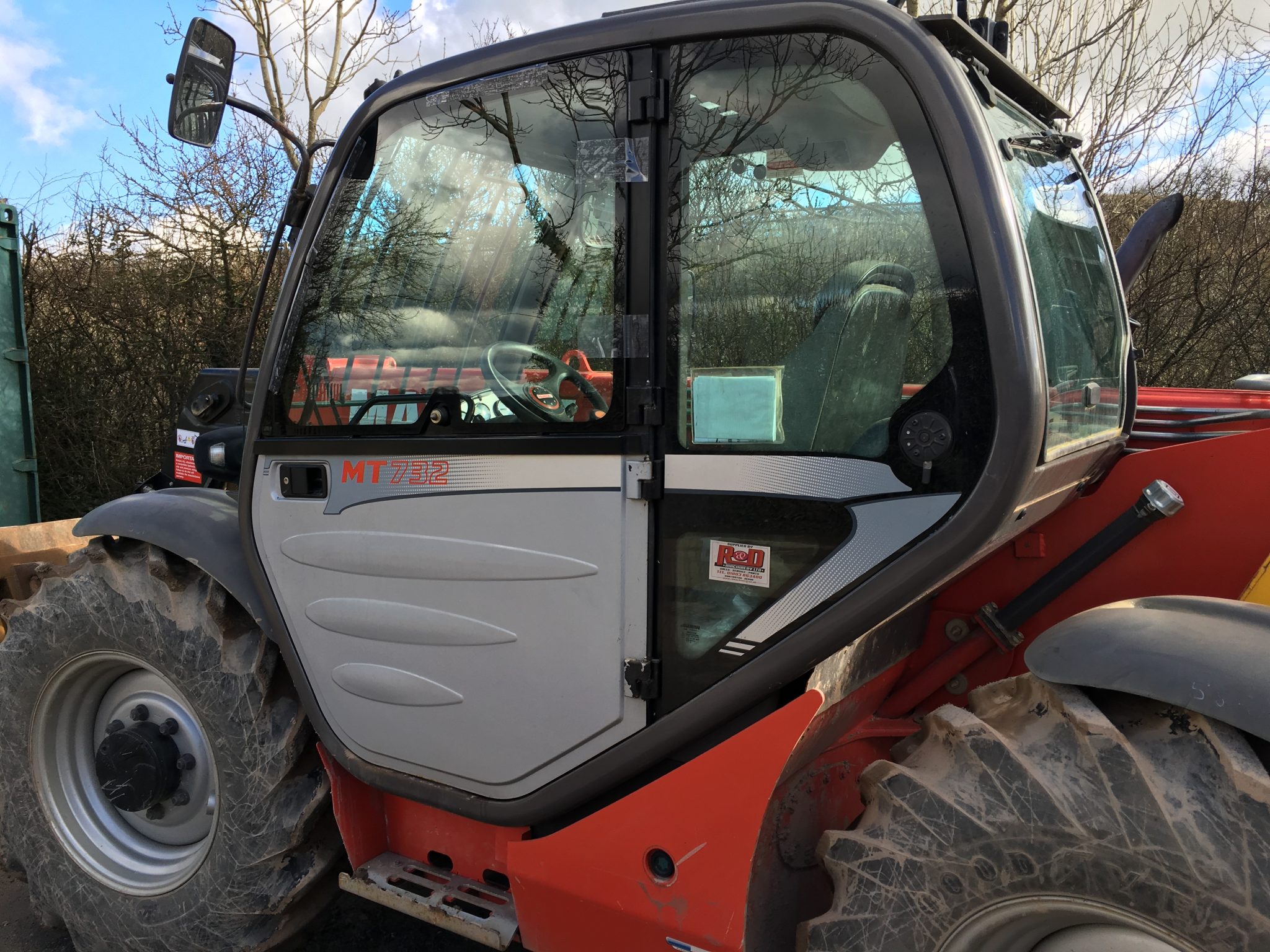 A replacement Manitou MT 732 doorglass in Totnes. After the severe weather last weekend this door was blown back against the cab causing the toughened glass to explode. Luckily the door frame wasn’t damaged so it was a quick replacement of the bonded window.