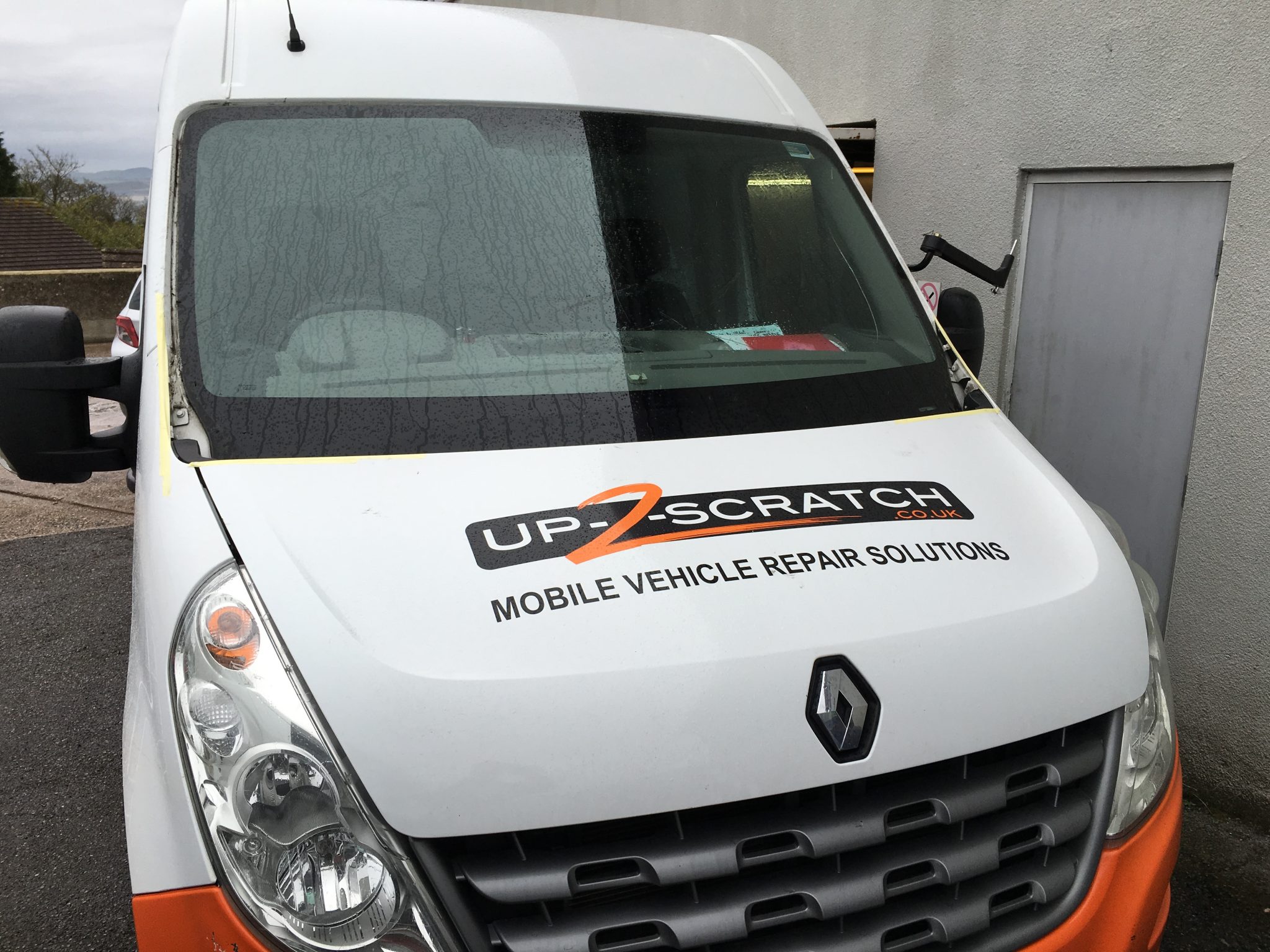 This Renault Master windscreen replacement was carried on site in Highweek for a local mobile vehicle repair specialist – Up-2-Scratch.