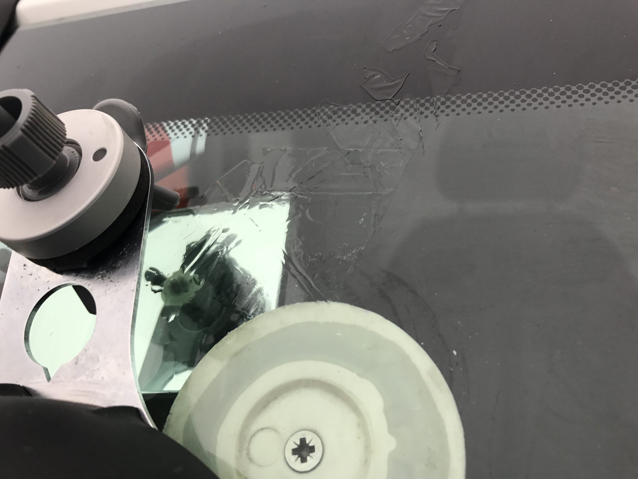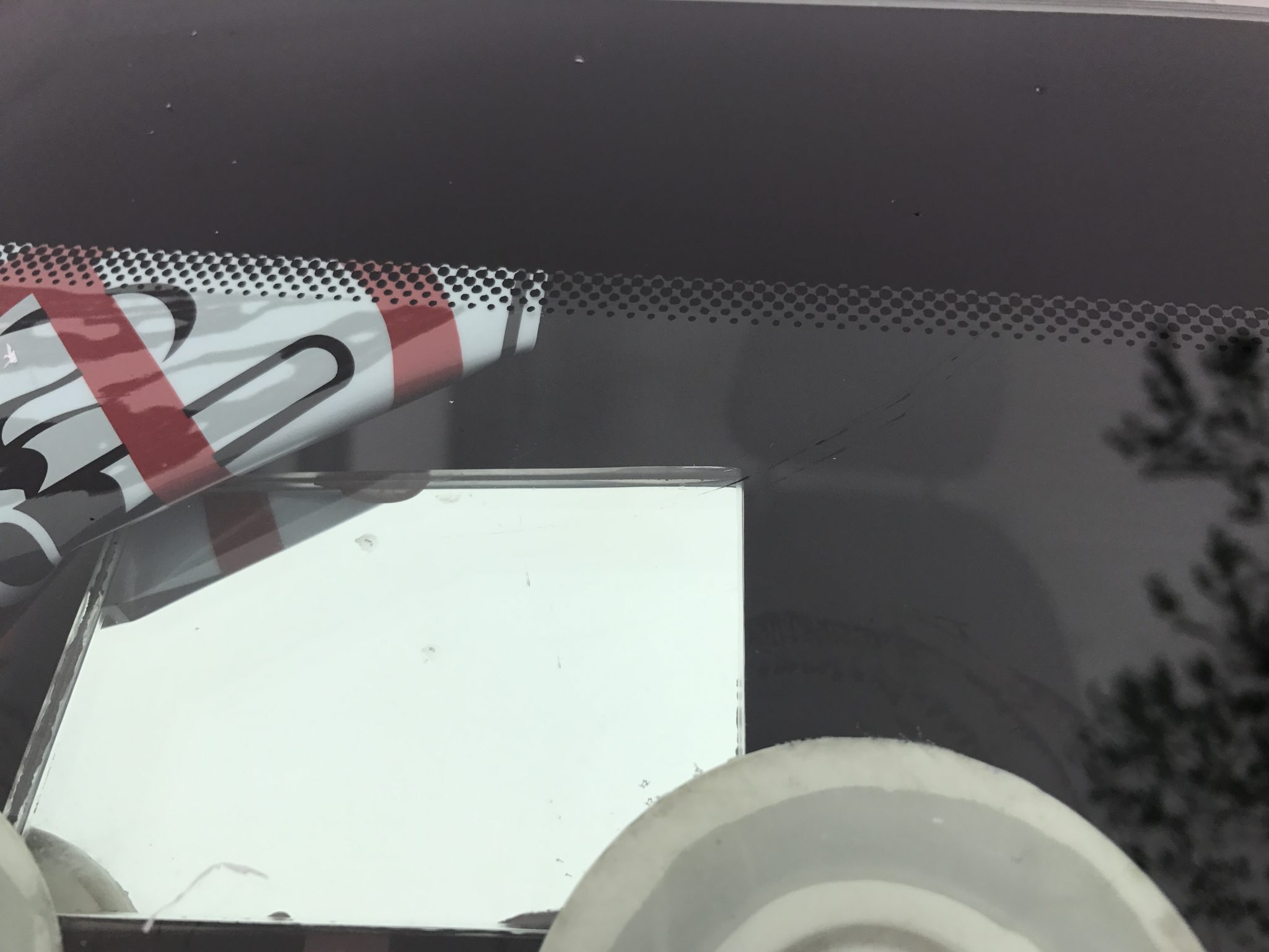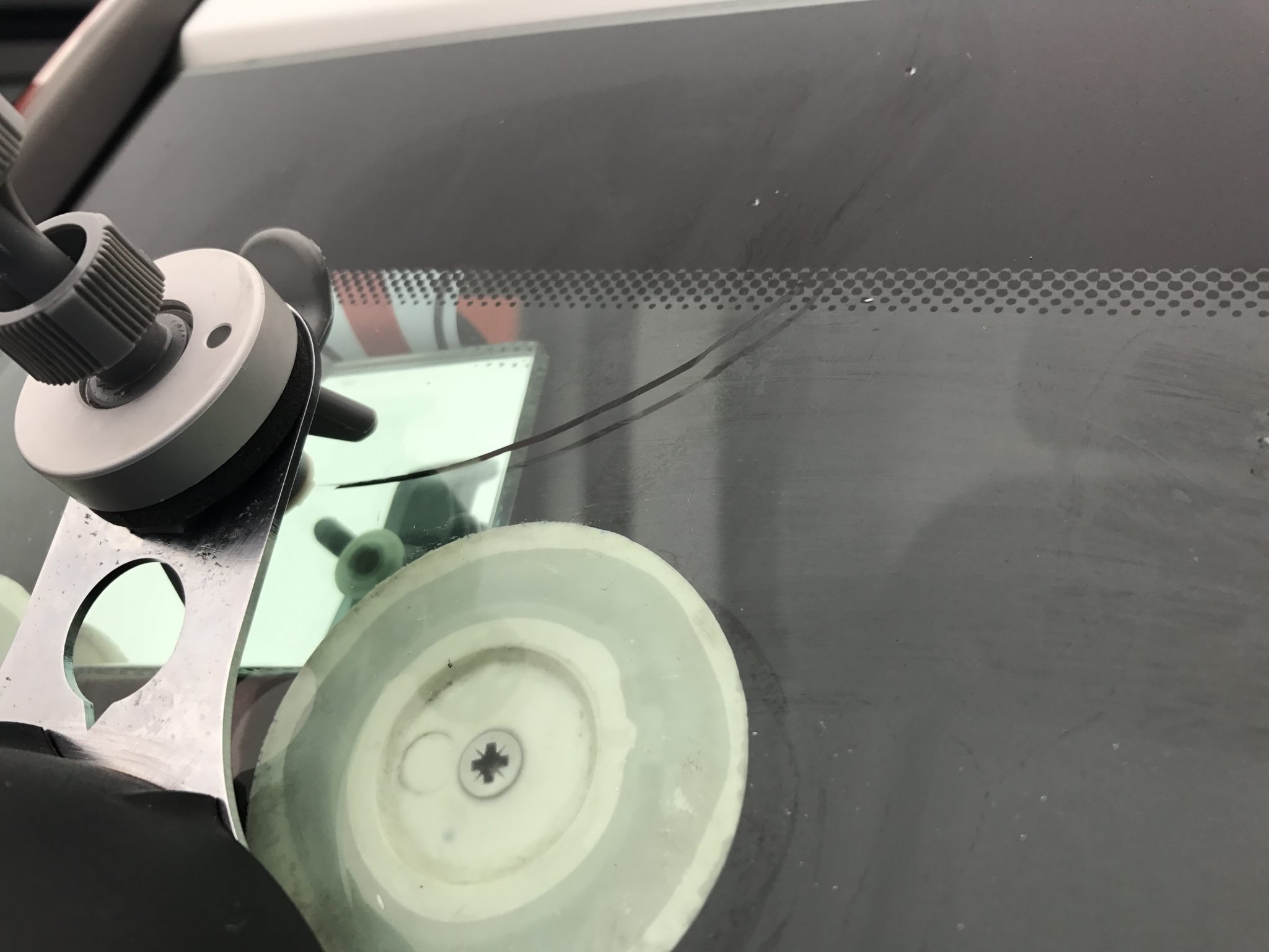 The van had come back in from a rental with a chipped and cracked windscreen. The windscreen was cracked across the top corner and didn’t really need a new screen so we carried out a windscreen repair. Similar to repairing a cracked coach windscreen, a small hole is drilled and impacted at the end of the chip to prevent it cracking any further. Then a normal windscreen stone chip repair is carried out, once the resin had flowed into the crack we then proceeded to fill the rest of the crack running from the top of the windscreen where the original chip occurred.